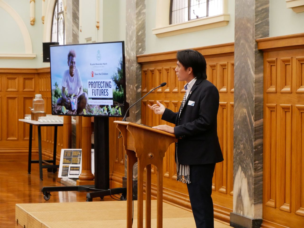 Photo by Save the Children NZ: Mr Reaksmey Hong presenting at the New Zealand Parliament.