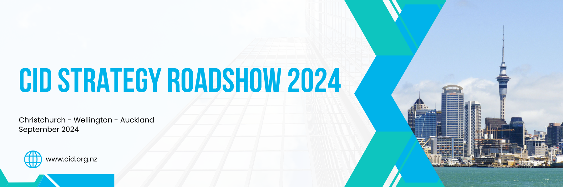 CID executive and board members will be running three roadshow sessions across Auckland, Wellington and Christchurch (dates listed below) where we will present an update on the CID Strategic Plan 2023-2026 and outline progress to date. We will also discuss next steps and key priorities as we move into the next phase of implementation.